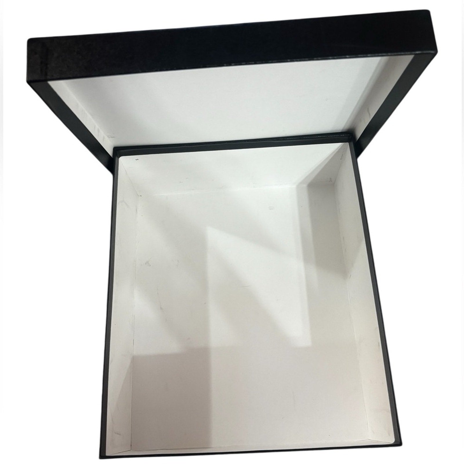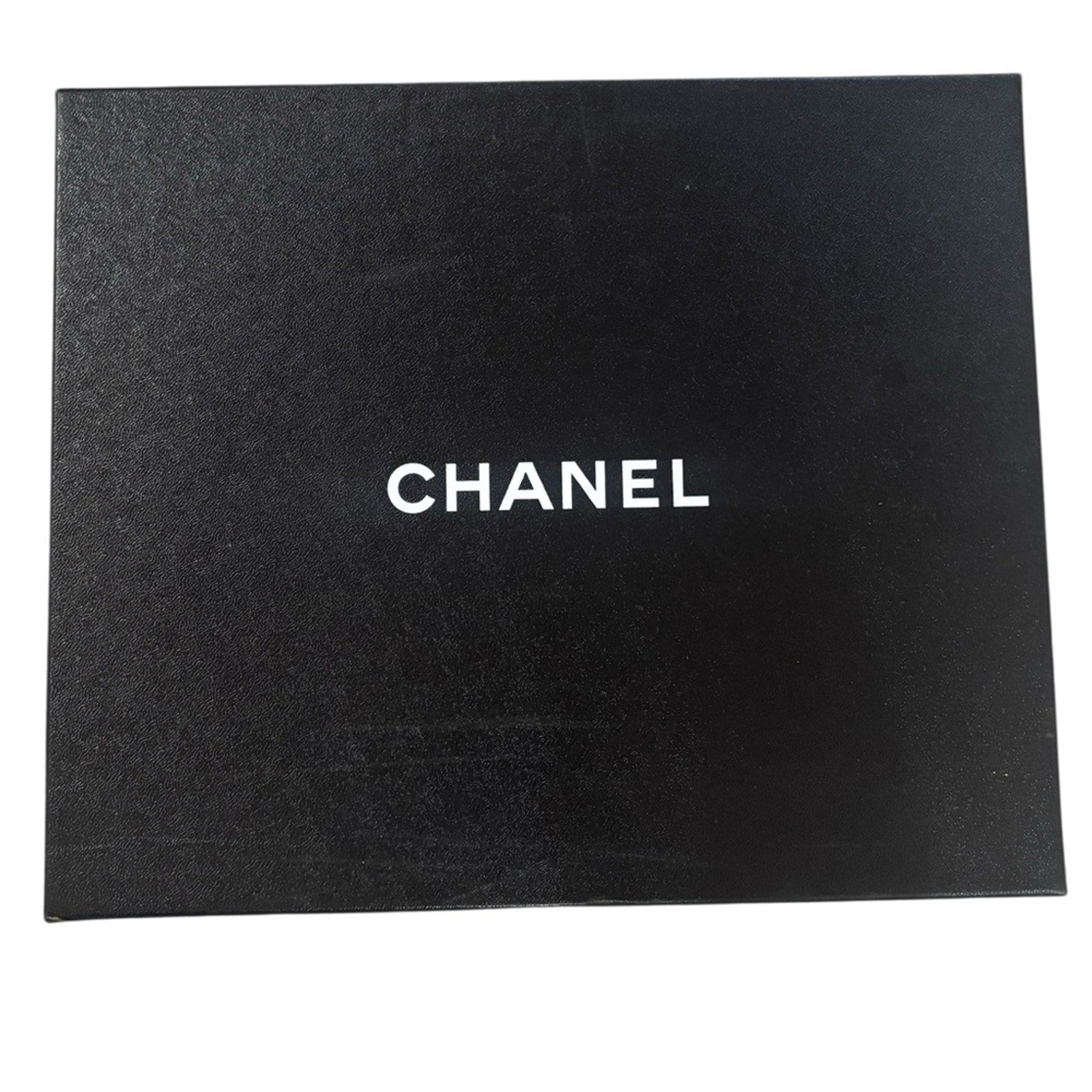Sleek black Chanel box with iconic logo. Ideal for gifts or storage.