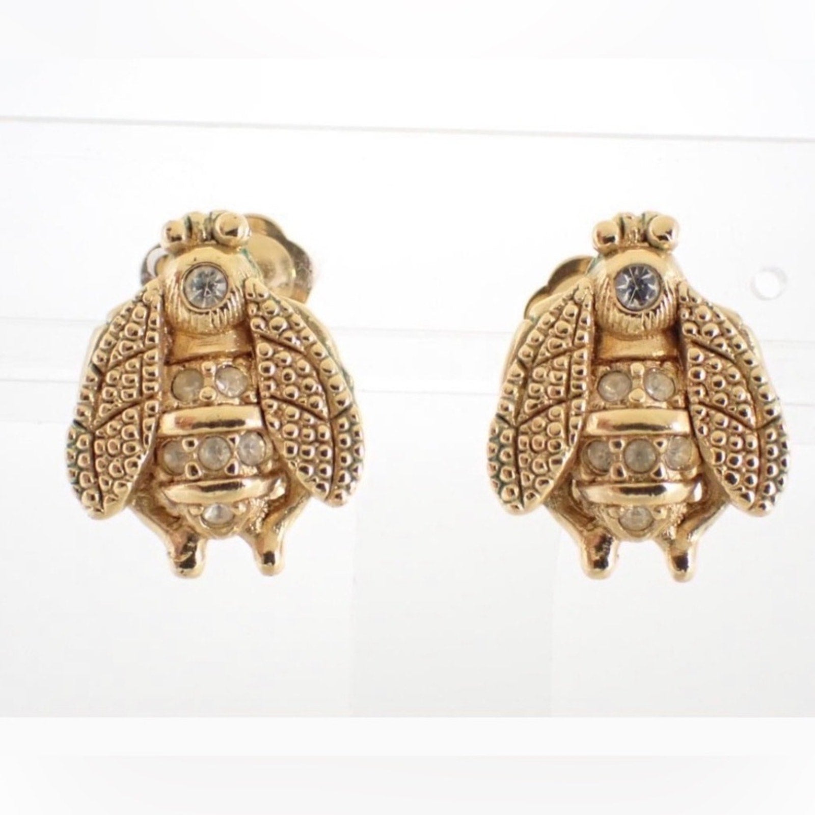 Christian Dior Bee Clip-on Earrings in Gold Metal with Rhinestones