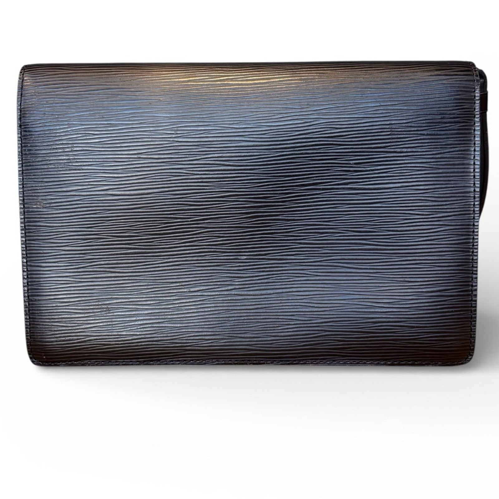 Authentic LV Epi Pochette Seller Dragonne Clutch in Noir Black. This is a stylish case in the ultra-stylized, ultra-modern line of epi leather bags.